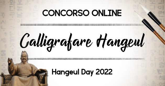 Il Concorso di calligrafia in Hangeul ha lo scopo di diffondere l'eccellenza dell'Hangeul, il sistema di scrittura della Lingua Coreana e per rafforzare le motivazioni di chi ha la sua acquisizione. Il concorso è organizzato dall’Istituto Culturale Coreano in occasione di 576° anniversario della Pubblicazione dell’Hunminjeongeum, il documento creato dal re Sejong in cui viene spiegata la logica alla base della scelta delle forme dei caratteri dell’Hangeul