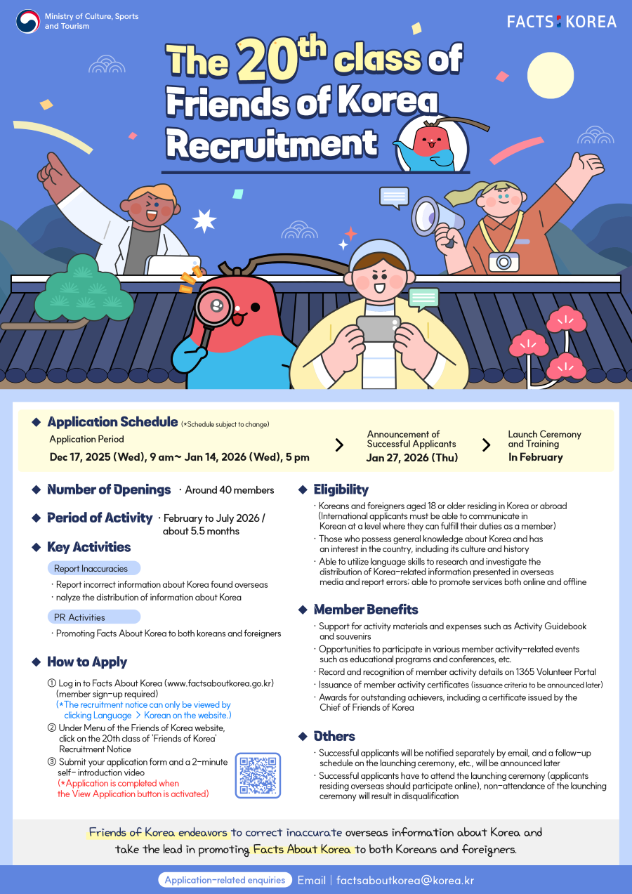 Aiutateci a diffondere informazioni corrette sulla Corea e sulla cultura coreana tramite il progetto "FRIENDS OF KOREA" promosso dal Ministero della Cultura, Sport e Turismo della Repubblica di Corea!