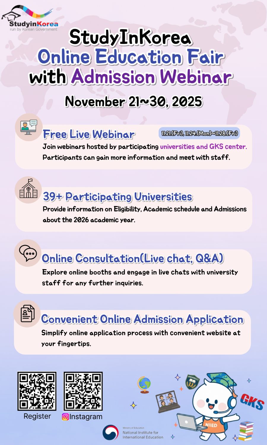Study in Korea 2025년 웨비나 입학설명회